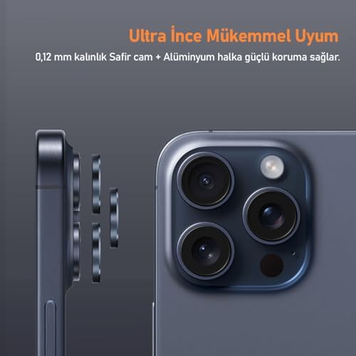 LABS 15 Pro Max / 15 Pro Uyumlu Titanyum Kamera Lens Koruyucu (Mavi Titanyum)