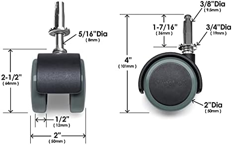 Slipstick CB681 zemin koruma kauçuk direksiyon tekerleği (4'lü set) 50 mm tekerlek ön yapı veya üst plaka için montaj seçenekleri