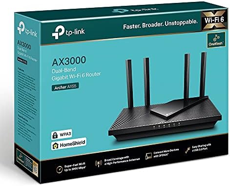 AX55, AX3000 Mbps Dual Band Wi-Fi 6 Router, Fiber Destekli, 4× Gigabit LAN Ports, WPA3, 1× USB 3.0 Port, Oyun için İdeal Xbox/PS4/8K Steam