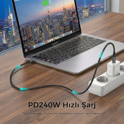 USB 4.0 V2.0, 80GBPS USB C Veri Kablosu, 240W USB C Şarj Kablosu, 8K@60hz 4K@240Hz 2K@360Hz Thunderbolt 5 Görüntü Kablosu, , Monitör, Docking İstasyonu, ile Uyumlu – 1 Metre