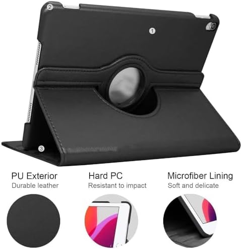 iPad İle Uyumlu Yatay ve Dikey Standlı 360 Derece Döner Tablet Kılıfı (SİYAH, iPad 9. Nesil 10.2)