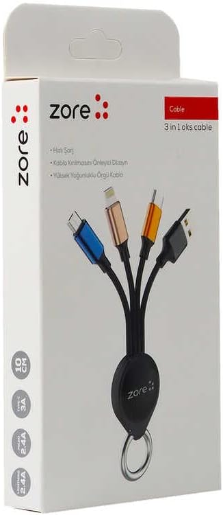Anahtarlık Tasarımlı, Type-C, Micro, Lightning Hızlı Şarj ve Data Veri Aktarım 3 in 1 USB Kablo