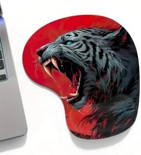 Angry Tiger Bilek Destekli Mouse Pad,Baskılı Masa Pedi,Ergonomik Rahat Konforlu Mouse Pad