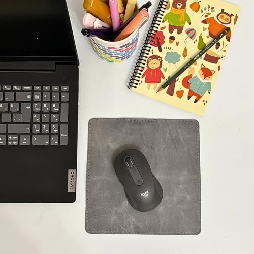 Bilgisayar Kullanıcıları İçin 20x20cm Ebatlarında, Ömürlük,%100 Hakiki Deri, Mousepad (GRİ)