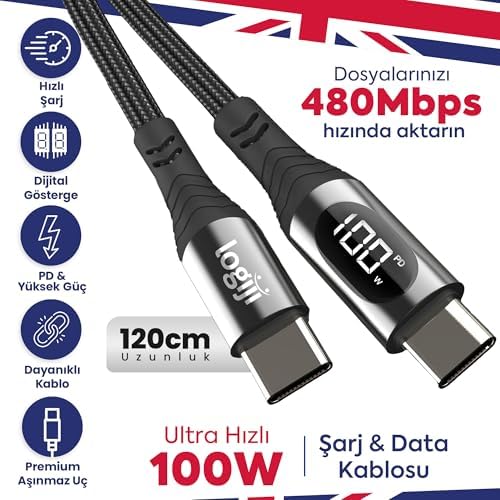 100W Çift Uçlu Type-C PD Şarj ve Veri Kablosu – E-Mark Chip, 1,5 Metre, Çift Cihaz Şarj Desteği
