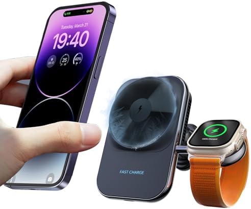 hkm tech MAG 15W kablosuz hızlı şarj, MagSafe Uyumlu Mıknatıslı Araç İçi Telefon Tutucu ve Şarjı