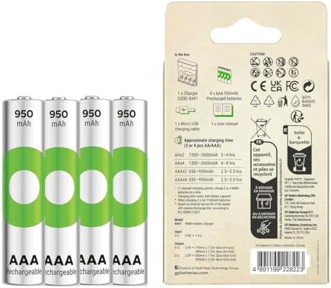 GP B441 USB Pil Şarj Cihazı 4 Adet 950mAh AAA İnce Pilli Set