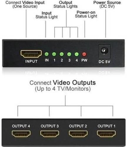 4 Portlu HDMI Splitter Dağıtıcı, 1 Giriş 4 Çıkışlı, Aynı Anda Görüntü Dağıtımı, 1.4V 1080P,