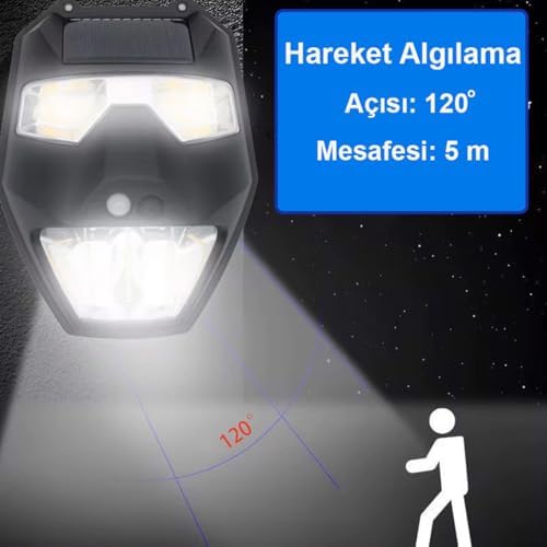 Güneş Enerjili Hareket Sensörlü 120 Ledli Solar Bahçe Sokak Mahalle Kapı Önü Aydınlatması 3 Modlu