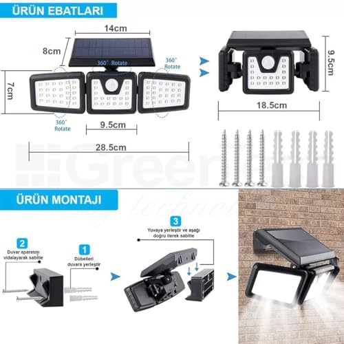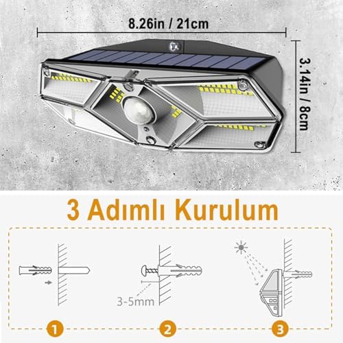 Güneş Enerjili Lamba Led Sokak Dış Ortam Solar Bahçe Aydınlatması Su Geçirmez Sensörlü (100 Led)
