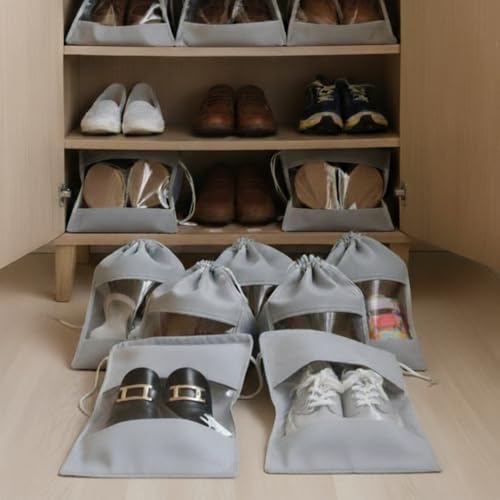 2 Adet Ayakkabı Saklama Hurcu Zigzag Desenli, 2'li Set, Pencereli, Askılı Dolap Düzenleyici, Gri