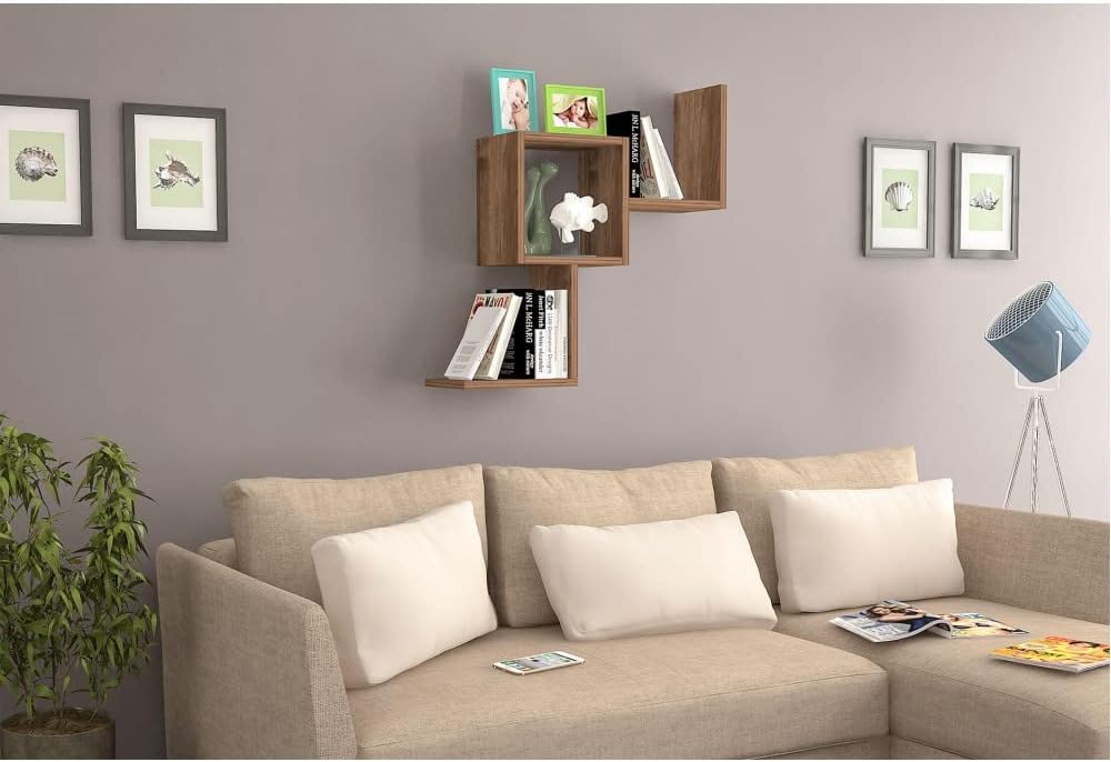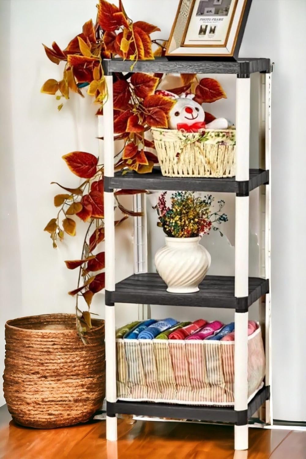 4 Raflı Ahşap Desenli Dekoratif Raf Ünitesi, Genişlik 38 cm, Derinlik 29 cm, Yükseklik 100 cm