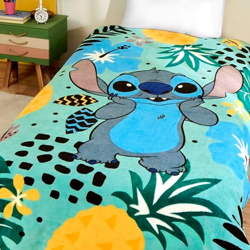 Lilo & Stitch Çizgi Film Karakteri Pamuk-Polyester Karışım Battaniye, Yeşil, Mavi, Siyah, Beyaz, Tek Kişilik