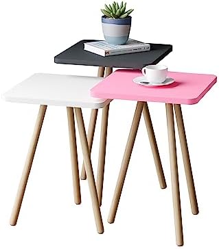 -Renkli Üçlü Zigon Sehpa Ahşap Ayaklı Kare Pastel Tasarım (Pembe,Beyaz,Gri)