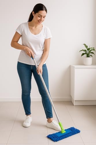 Famous + Düz Mop Yer Temizlik Sistemi, Islak ve Kuru Kullanım, 360 Döner Başlıklı Pratik Paspas