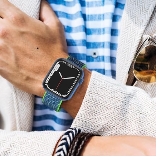 watch ile Uyumlu Hasır Örme Spor Loop Kordon Kayış 38-40-41 mm (Lacivert – Yeşil)