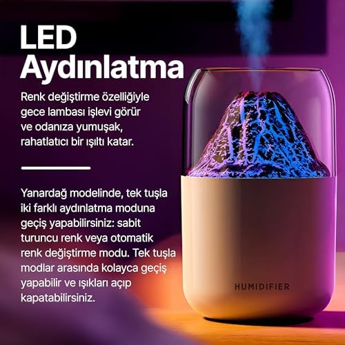 Ultrasonik Hava Nemlendirici 300 Ml Ortam Nemlendirici Işıklı Hava Nemlendirici Buharlı Nemlendirici