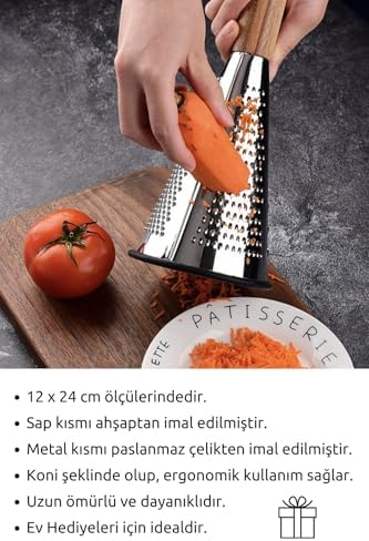Ahşap Saplı Modern Paslanmaz Çelik Koni Rende 28 x 12 Cm