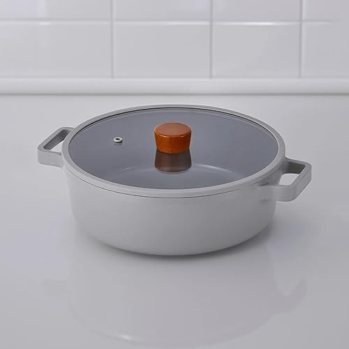 Cam Kapaklı Alüminyum Gri Döküm Sığ Tencere 30 cm D-NEOG230L
