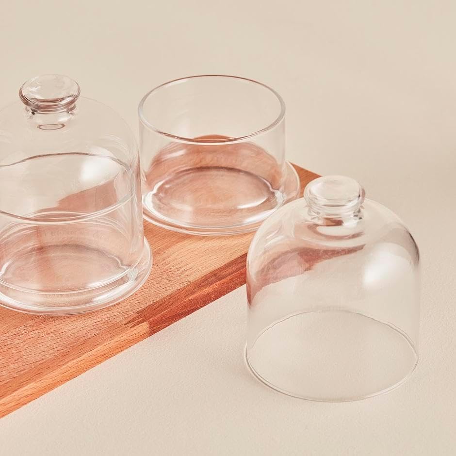 Ahşap Stantlı Reçellik Seti Cam Kapaklı Kurabiyelik Kuruyemişlik 2li Saklama Kabı