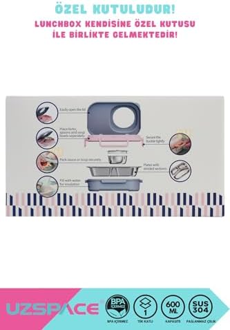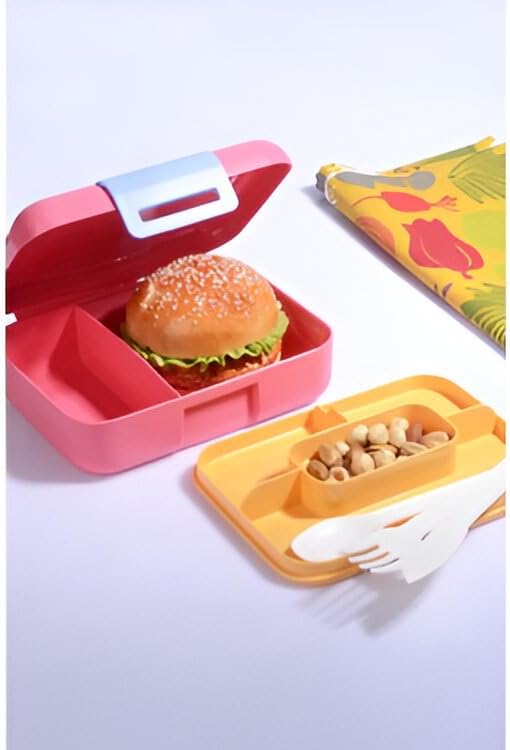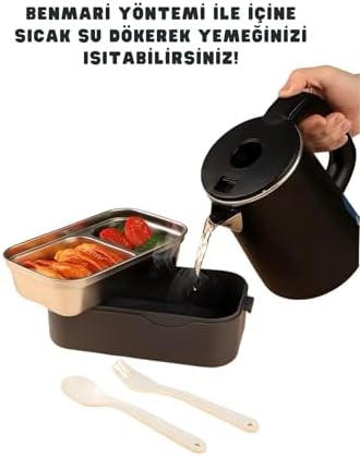 Bento 1100ml Lunchbox Tek Katlı 3 Bölmeli Kaseli Çelik Sefer Tası Yemek Kutusu (Turuncu-Turkuaz)