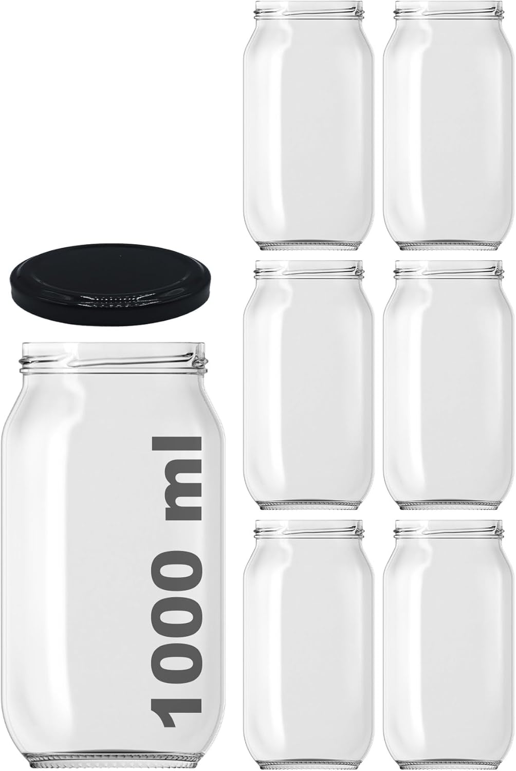 1000 ml Şeffaf Cam Kavanoz 1000 cc Konserve Metal Kapaklı Cam Kavanoz 6 Adet (Şeffaf, 1000 cc)