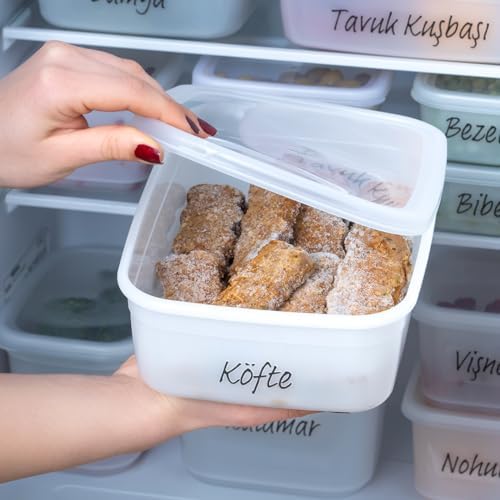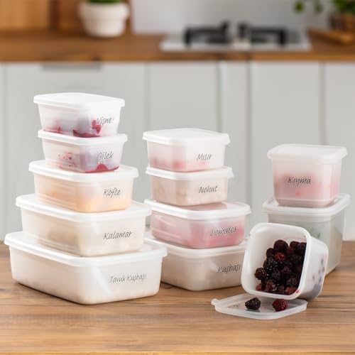 1126 12'lı Etiketli No Frost -25°C Derin Dondurucu Mikrodalga Yiyecek Erzak Saklama Kabı Seti Beyaz