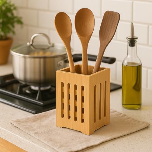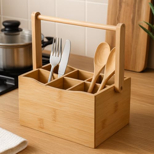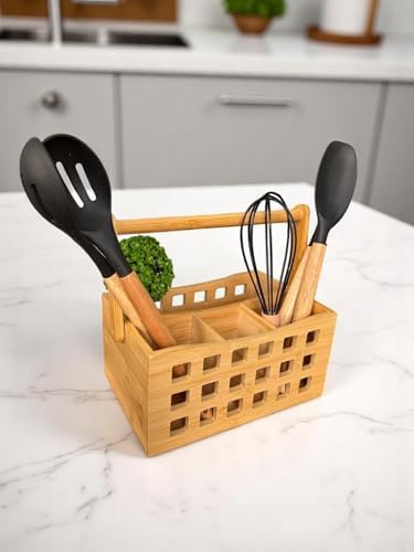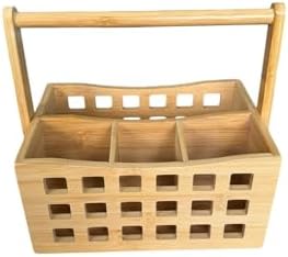 4 Bölmeli Saplı Bambu Çatal Bıçak Sepeti Organizer Kalemlik Çok Amaçlı Sepet 23×15 cm