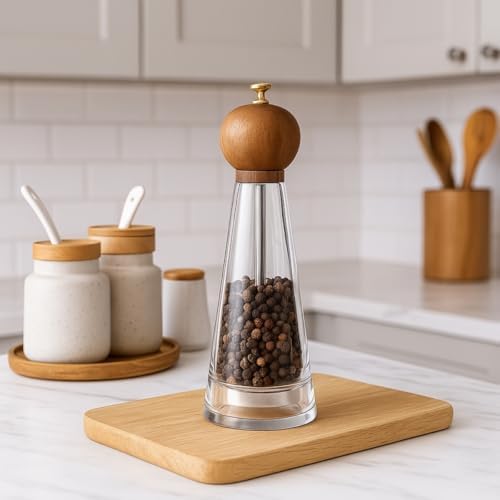 Akasya Kapaklı Baharat Öğütücü – 22,5 cm Cam Baharat, Tuz, Karabiber, Şık ve Dayanıklı Tasarım