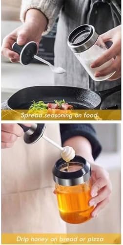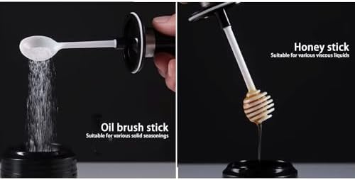 Cam Baharatlık ve Ballık Seti, 4'lü Kavanoz Seti, Kendinden Kaşıklı, Siyah Kapaklı 300 mL