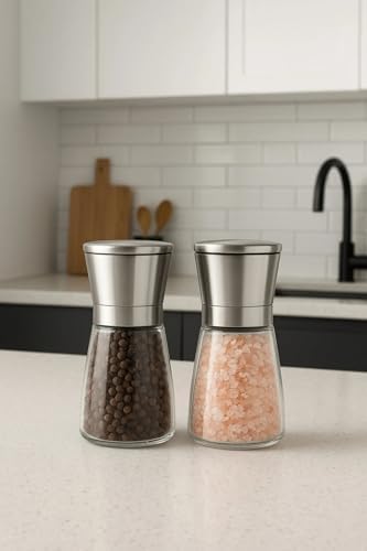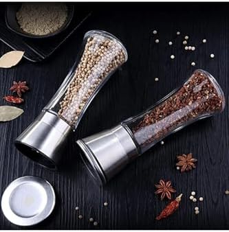 Cam Gövdeli Metal Krom Renk Kapaklı Tuz Karabiber Değirmeni Tuz Karabiber Öğütücü 13 Cm 2 Adet