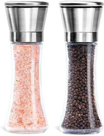 Cam Gövdeli Metal Krom Renk Kapaklı Tuz Karabiber Değirmeni Tuz Karabiber Öğütücü 19 Cm 2 Adet