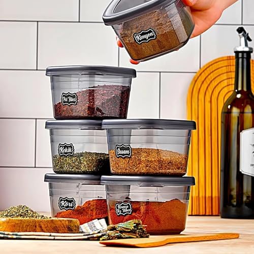 6 Adet Square Etiketli Baharatlık Takımı – 550 ml – 6'lı Kare 0.55 Lt