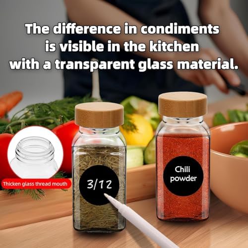 4'lü Cam Baharatlık Seti, Bambu Kapaklı ve Standlı, Mutfak Organizatörü, Baharat Saklama Kabı