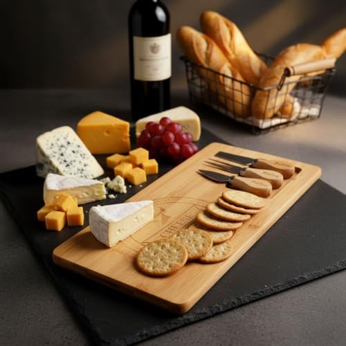 4 Parça Bambu Ahşap Peynir Servis Sunum Kesim Seti Peynir Servis Tahtası Spatula Bıçak Çatal