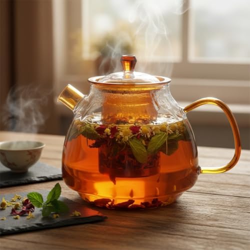 2300 ml Büyük Boy Ateşe Dayanıklı Çizgili Süzgeçli Demlik Borosilikat Cam Çaydanlık Takımı