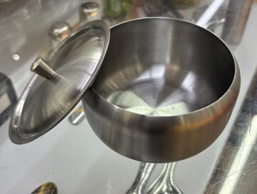 Paslanmaz Çelik Şekerlik, Kapaklı Lokumluk, 10 cm x 7 cm, Gümüş Rengi Hurma Kasesi, Küp Şekerlik