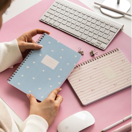 A5 Spiralli Karton Kapak 4'lü Set Çizgili Okul Defteri 80 yaprak – Ders Programlı Mavi Pembe Yıldız
