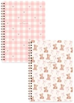 A5 Spiralli Karton Kapak 2’li Set Kareli Okul Defteri 80 yaprak, Ders Programlı Ayıcık