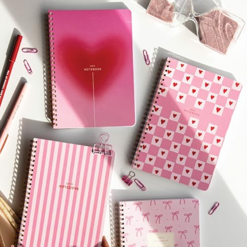A5 Spiralli Karton Kapak 4'lü Set Kareli Okul Defteri 80 yaprak – Ders Programlı Pembe Kurdele Kalp