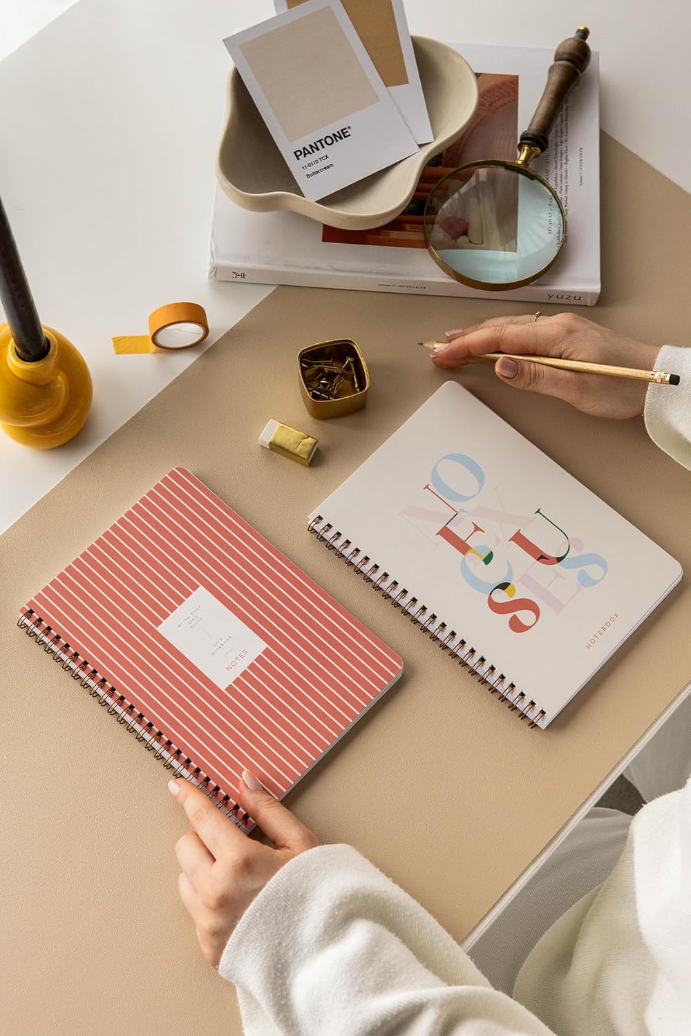 A5 Spiralli Karton Kapak 2’li Set Düz Çizgisiz Okul Defteri 80 yaprak, Ders Programlı Kiraz