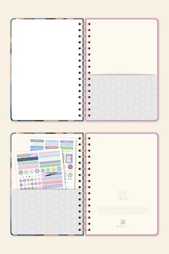 A5 Spiralli Sert Kapak Lastikli Noktalı Tarihsiz Not Defteri Çok Renkli