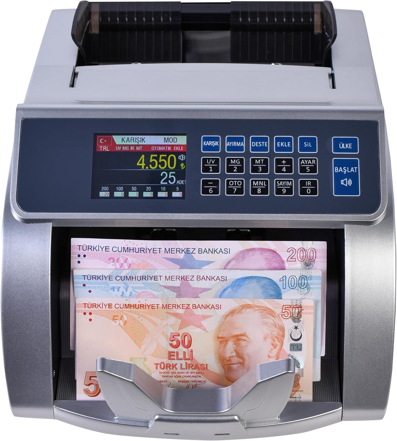 Otomatik Para Sayma Makinesi USD, EUR, TL, GBP, SYP Para Ayıklama,Banko Ekranı, Para Desteleme
