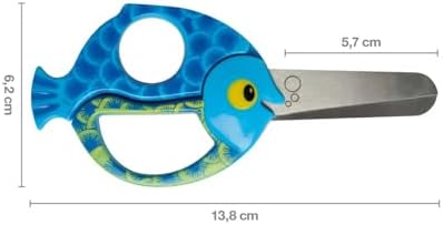 Çocuk hayvan makası balık motifli sağ ve sol elini kullananlar için, mavi, uzunluk 13 cm