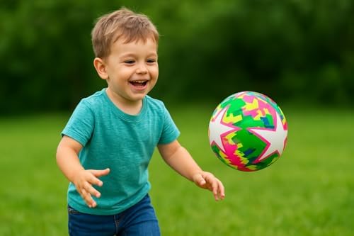 MTA -TECH Renkli Top, Oyun Topu, Şişme, Dayanıklı, Çocuklar İçin Spor ve Eğlence Oyuncak Topu | Plaj, Bahçe, ve Havuzda Kullanıma Uygun, 1 Adet Top Şişirme İğnesi Hediyeli