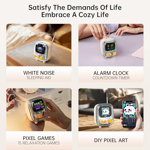 Tiivoo-2 FM Radyo Bluetooth Hoparlör Çalar Saatli, Art Retro Mini Küçük Sevimli Kablosuz Hoparlör, Dekor Parti Ofis Ev Masası Yatak Odası Mutfak Dış Mekan için Uygun, Krem