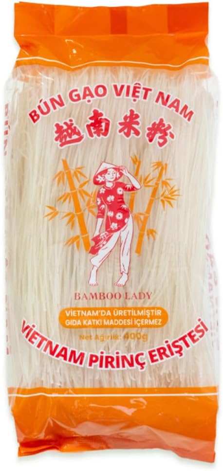 BAMBOO LADY Pirinç Çubuk Eriştesi 5mm, Vietnam Menşeli, 400G (Vietnamese Rice Stick Noodle)