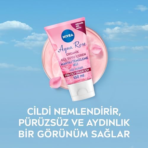 NIVEA Aqua Rose Organik Gül Suyu İçeren Makyaj Temizleme Jeli 150 ml, Nemlendirici, Canlandırıcı