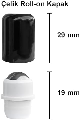 Afracam 10 ml Çelik Roll On Şişesi 10 cc Sızdırmaz Siyah Kapaklı Cam Şişe 6 Adet (Amber, 10)
