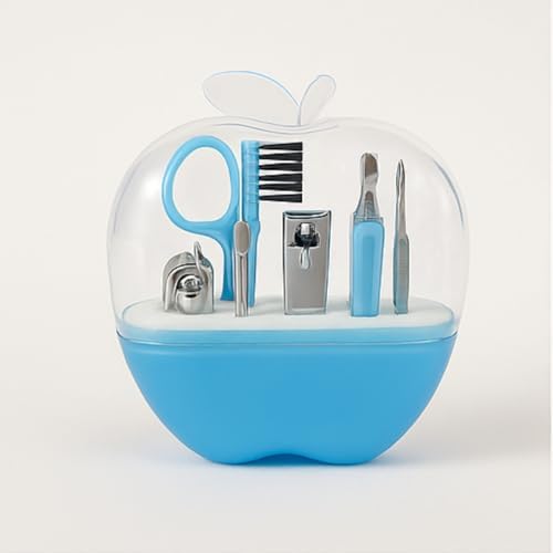 Manikür & Pedikür Seti – Elma Şekilli 8’li Mavi, Taşınabilir Tırnak Bakım Kiti